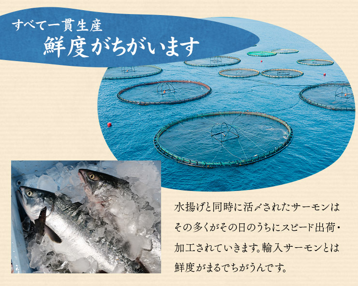 身が締まり脂ののった国産サーモン使用。形不揃いですが味は変わりません