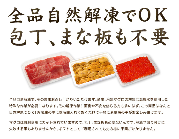 【送料無料】天然マグロ中トロ、ウニ・イクラ、豪華海の幸勢揃い!全品自然解凍OK《not-ts1》〈ts1〉yd9[[中トロ海鮮セット]