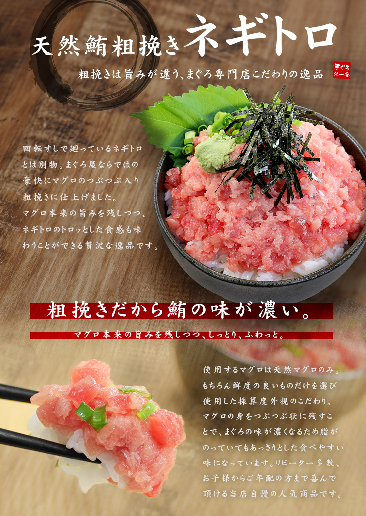 本鮪大トロ100g、天然マグロネギトロ100g、