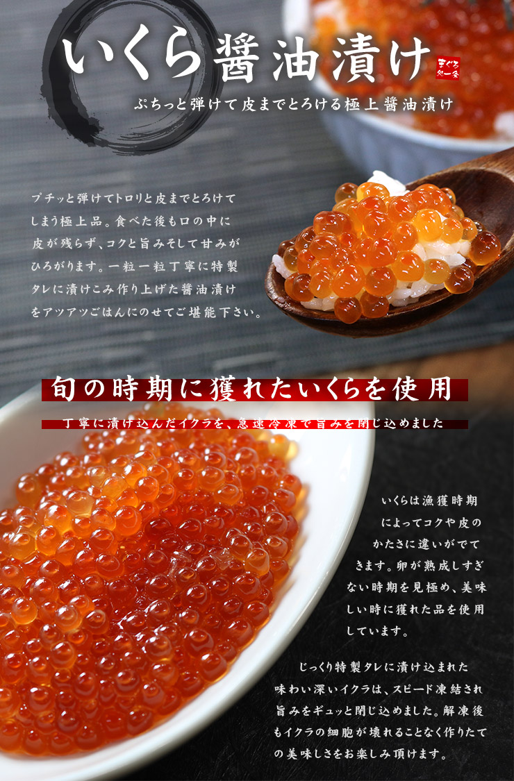 いくら:いくら(鮭の卵(アメリカ産))、醤油加工品(小麦・大豆を含む)、醤油(小麦・大豆を含む)