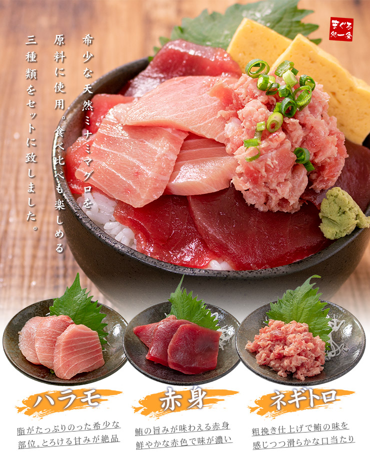 天然南鮪 三種セット(ハラモ・赤身・ネギトロ)