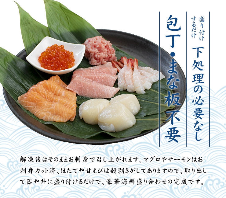 <ホタテ、イクラ、サーモン、甘えび>商品に記載 ※お届け後、冷凍保存で約1ヶ月推奨。解凍後即日
