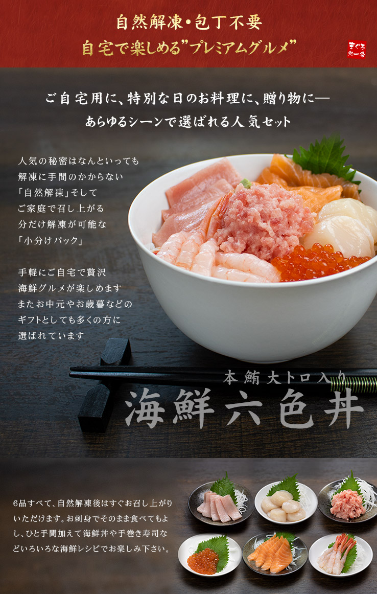 【送料無料】海鮮六色丼セット 本マグロ大トロ、イクラ、ネギトロ、生ほたて、サーモン、甘えび 海の幸6品詰め合わせ(食べ物 海鮮丼 手巻き寿司 海鮮福袋 お中元 刺身 ギフト プレゼント 高級 魚介 贈り物 おつまみセット)《not-rsd1》〈rsd1〉yd5[[海鮮六色丼]