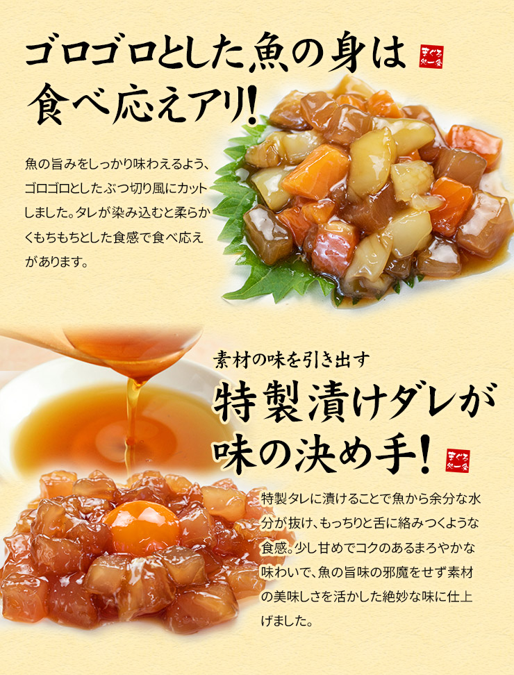 ぶっかけ海鮮漬け(生食用)、ぶっかけまぐろ漬け(生食用)