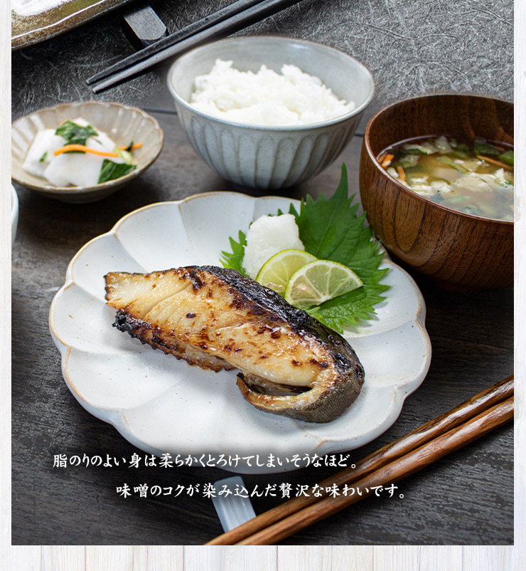 脂ののった身はとろけそうなほど柔らか、味噌のコクが染み込んだ贅沢な味わい。