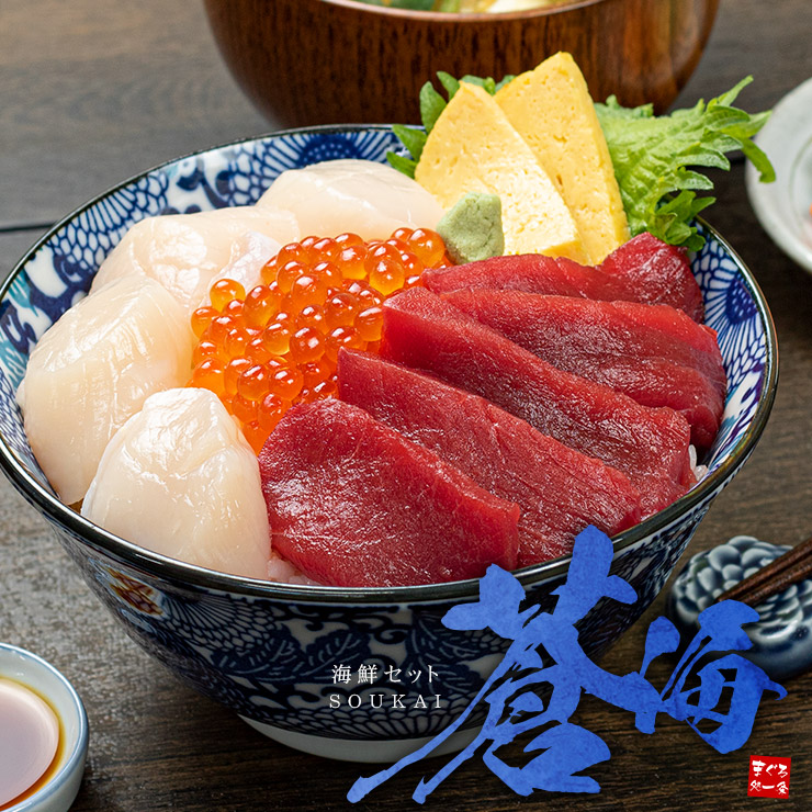 海鮮セット蒼海(そうかい) 大間のまぐろ赤身 秋鮭いくら醤油漬け 北海道産ほたて貝柱 送料無料(母の日 父の日 お中元 ギフト プレゼント 海鮮セット 海鮮福袋 高級)〈sok1〉yd9[[海鮮セット蒼海そうかい]