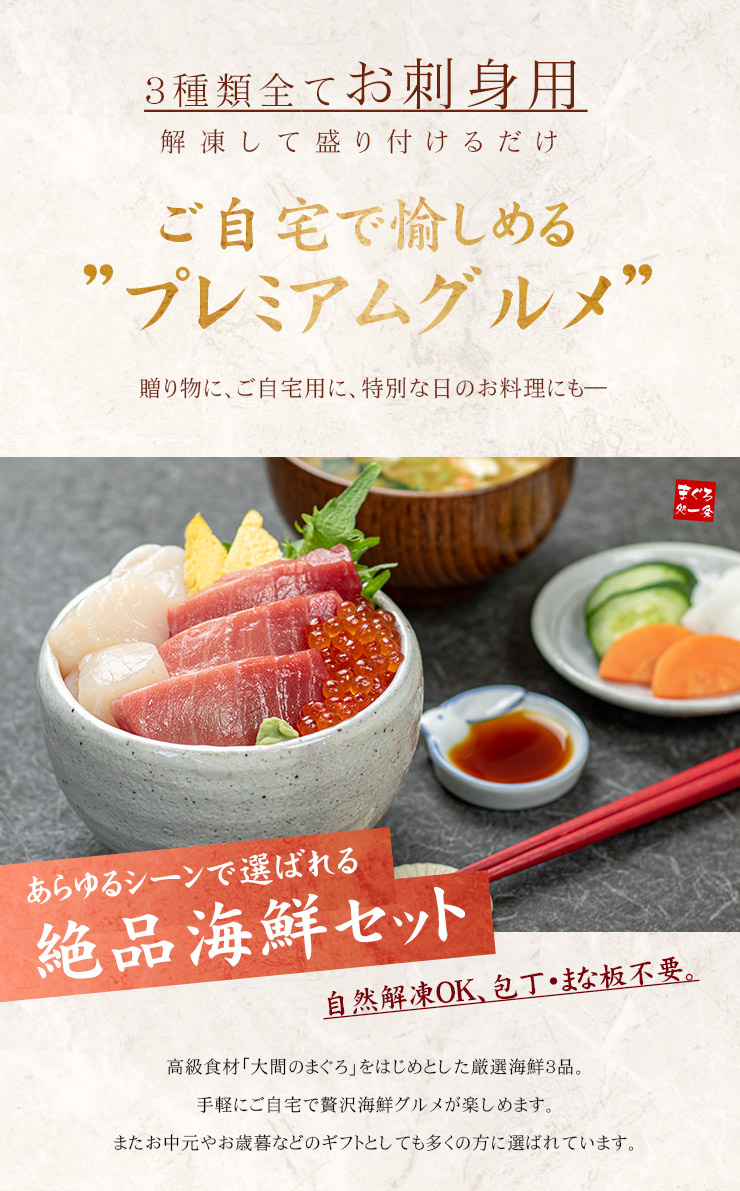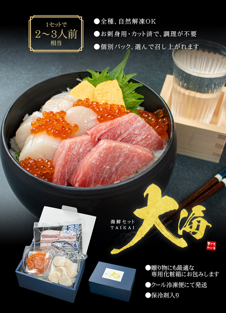 海鮮セット大海(たいかい) 大間のまぐろ大トロ 秋鮭いくら醤油漬け 北海道産ほたて貝柱 送料無料(母の日 父の日 お中元 ギフト プレゼント 詰め合わせ 海鮮福袋 高級)〈tik1〉yd9[[海鮮セット大海たいかい]