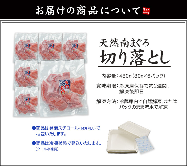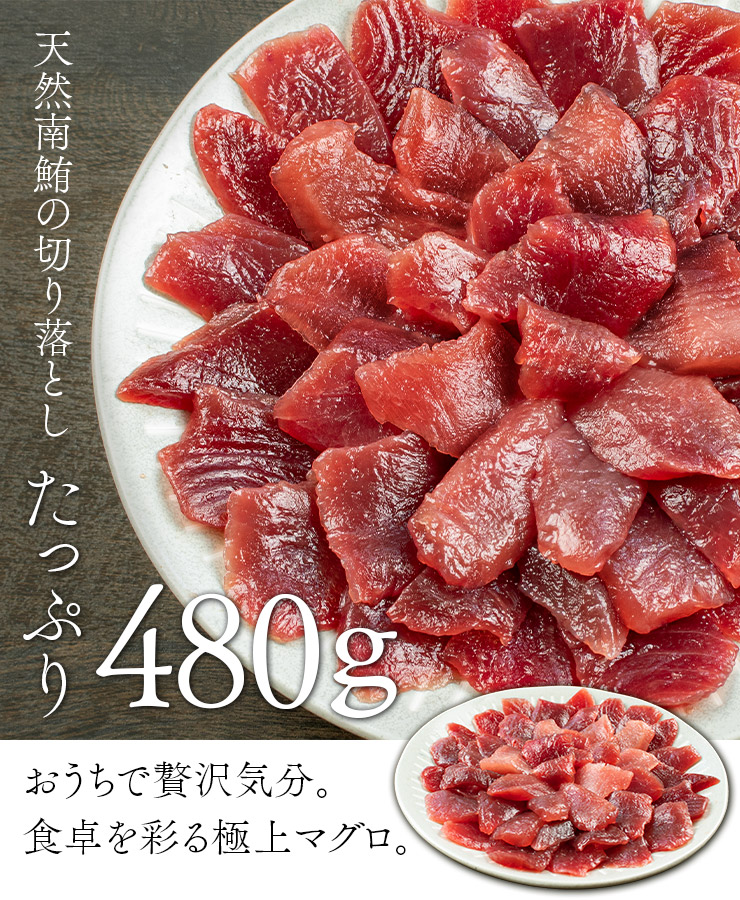 天然 南マグロ 切り落とし 480g(80g×6パック) もっちりとした食感、甘みと深いコクのみなみまぐろ(ミナミ鮪 寿司 手巻き寿し おつまみ 刺身 まぐろ インド鮪 母の日 父の日 ギフト)[[天然ミナミ鮪切落しセット]