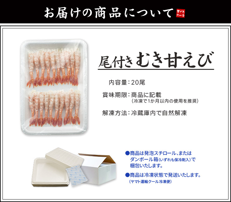 尾付きむき甘えび20尾入り《ref-eb1》〈eb〉yd5[[甘エビ20尾]