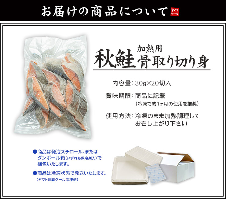 秋鮭 骨取り切り身 30g×20切れ 加熱用 無塩 バラ凍結 チャック袋入 (白鮭 さけ 弁当 朝食) [[サケ骨取り切り身]