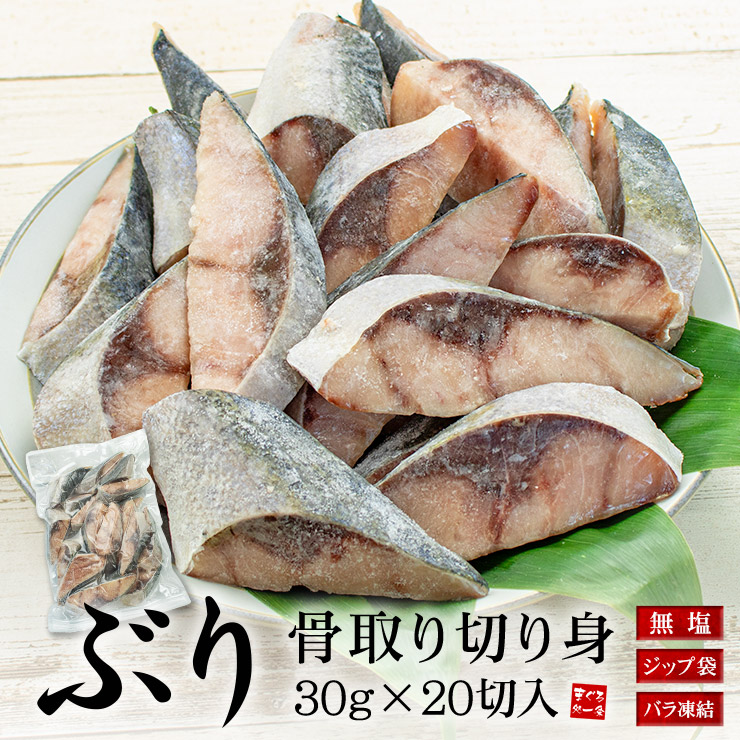 ぶり 骨取り切り身 30g×20切れ 加熱用 無塩 バラ凍結 チャック袋入 (鰤 弁当 朝食) [[ぶり骨取り切り身]
