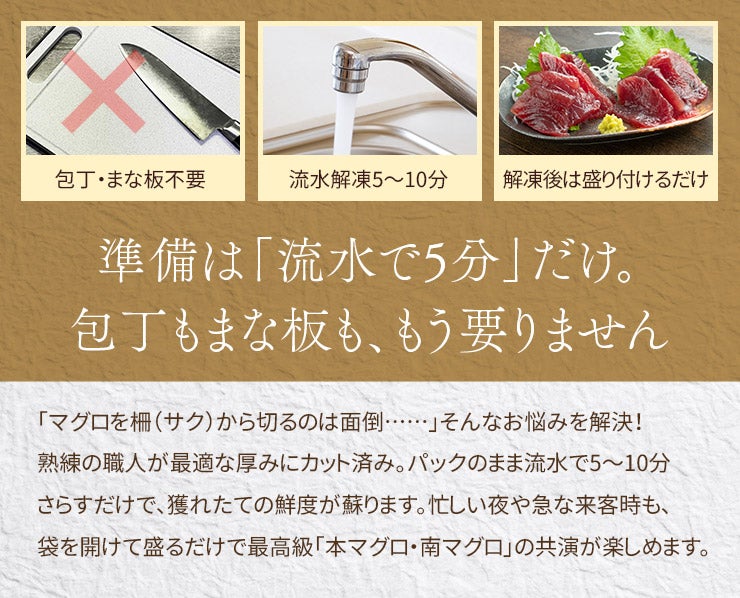 他の画像を見る 【送料無料】まぐろ尽くし福袋増量版!本マグロ大トロなど色々なマグロが勢揃い!たっぷり4品860gお届け 自然解凍でOK 海鮮福袋《not-ds1》〈ds1〉yd5[[マグロ尽くし福袋-2p] クール便でお届け 販売価格 ¥ 9,280 税込 大トロ、中トロ、ネギトロ、づけ!海鮮丼 手巻き寿しに カートに入れる お気に入りに登録する