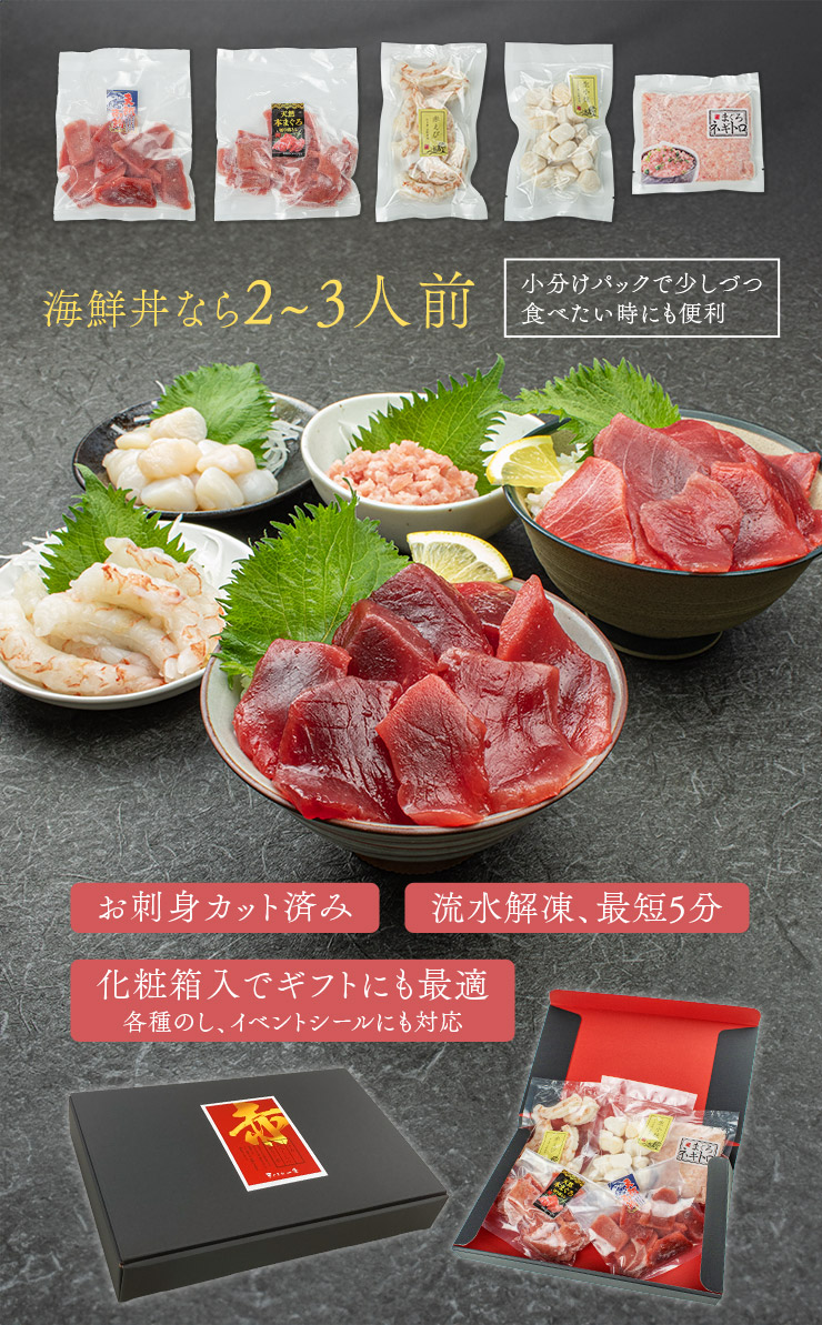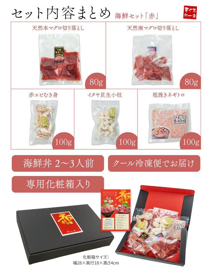 海鮮セット「赤」海鮮5種 詰め合わせ 高級マグロ夢の競演 本マグロ 南マグロ 赤エビ 生小柱 ネギトロ 送料無料 (食べ物 母の日 父の日 敬老の日 お中元 ギフト プレゼント 刺身 セット 海鮮丼)[[海鮮セット赤]