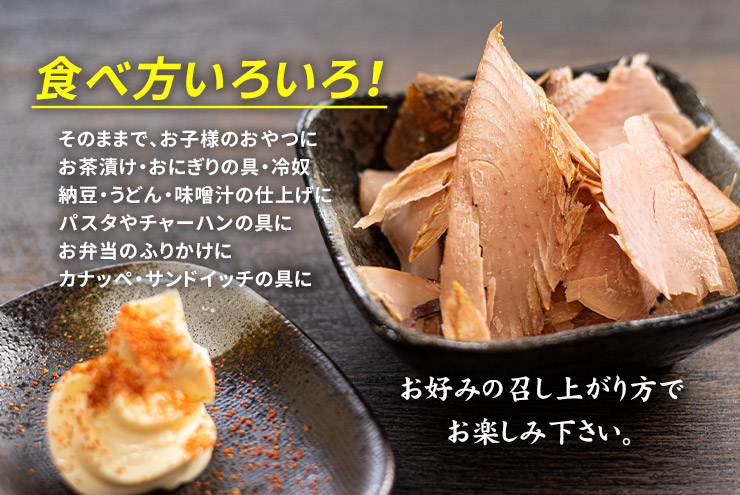 かつお(国産)、砂糖、醤油(小麦・大豆を含む)、発酵調味料、還元水飴、かつお節調味液、昆布調味液、酵母エキス、食塩