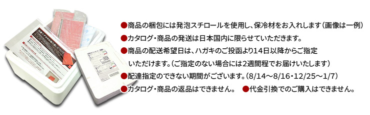 〇商品の配送希望日は、ハガキのご投函より14日以降からご指定いただけます。