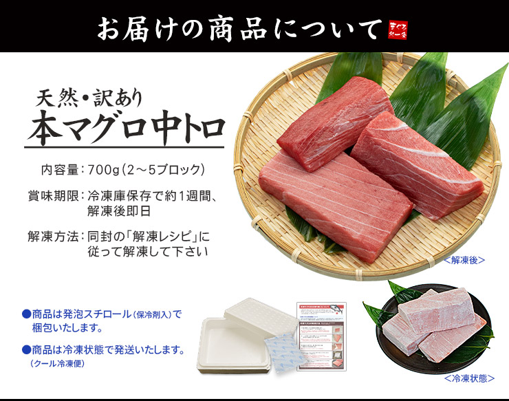 天然本マグロ 訳あり中トロセット 解凍レシピ付き