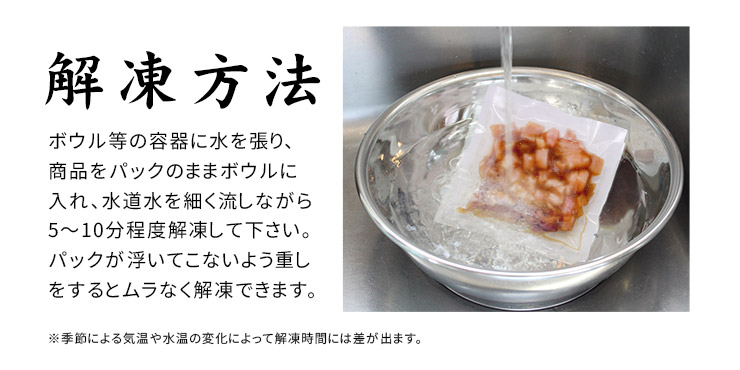 流水解凍、または冷蔵庫内で自然解凍