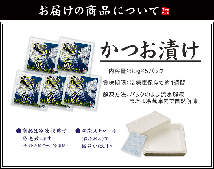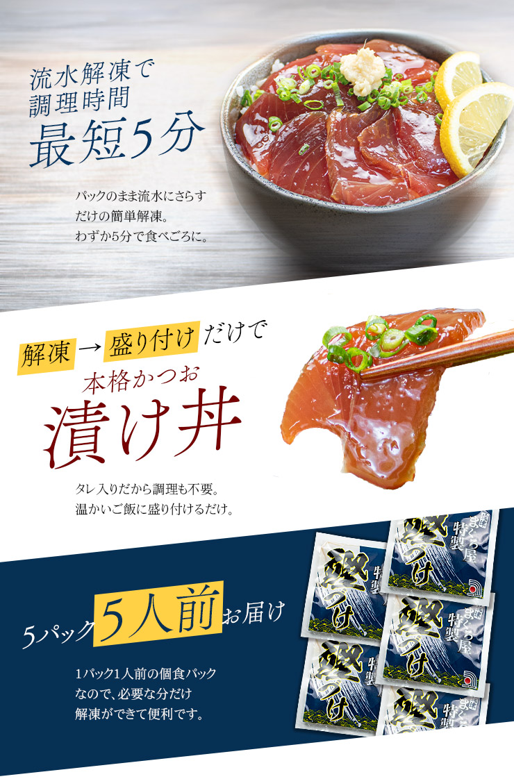 カツオづけ5人前(80g×5パック) 送料無料 流水解凍わずか5分(母の日 父の日 お中元 ギフト プレゼント 海鮮丼 dk)《ref-ktd1》〈ktd1〉[[カツオ漬け-5p]