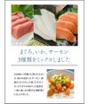 黄肌鮪(日本、台湾、その他)、イカ(日本)、トラウトサーモン(チリ)、たれ(醤油、米発酵調味料、砂糖、魚介エキス、魚油、醸造酢、昆布エキス、酵母エキス)/増粘剤(加工デンプン)、(原材料の一部に小麦・大豆を含む)