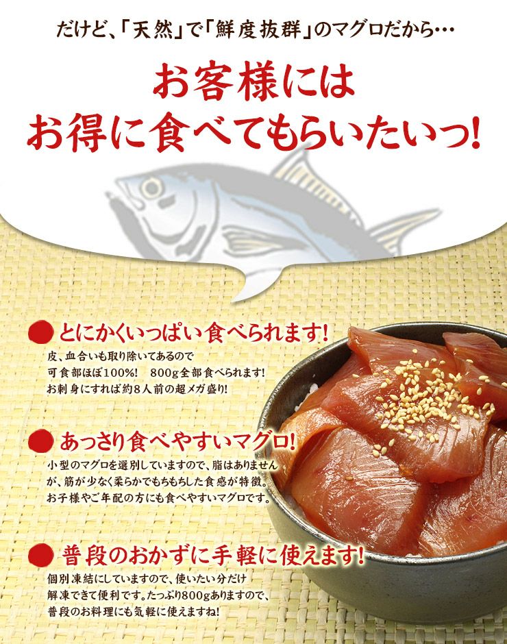他の画像を見る 【送料無料】普通に旨い!天然キハダマグロ赤身メガ盛り800g!皮なし、血合いなしだから可食部はほぼ100%!解凍レシピ付《pbt-yf1》〈yf1〉yd5[[キハダ赤身800g] クール便でお届け 販売価格 ¥ 3,980 税込 在庫切れ 天然マグロ赤身食べ放題!普段のおかずにおススメ 詳細を見る お気に入りに登録する