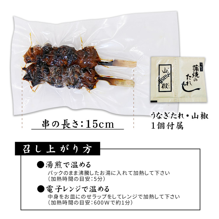 国産うなぎ肝串蒲焼(30g×2本)希少な肝を香ばしく焼き上げました 肝の甘みとほろ苦さがお酒との相性抜群!レンジ温めるだけ タレ山椒付《ref-ugk2》yd9[[国産うなぎ肝串2本]
