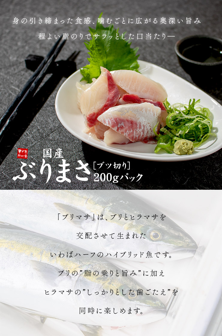 国産 ブリマサ ぶつ切り 200g ヒラマサの引き締まった食感とブリの濃厚な脂のりが両方楽しめる品種。切り落とし部位を使った訳あり品ですが色・鮮度は抜群。流水解凍OK (お刺身 寿司 手巻き寿し カルパッチョ おつまみ 海鮮丼) [[ぶりまさブツ切り200g]