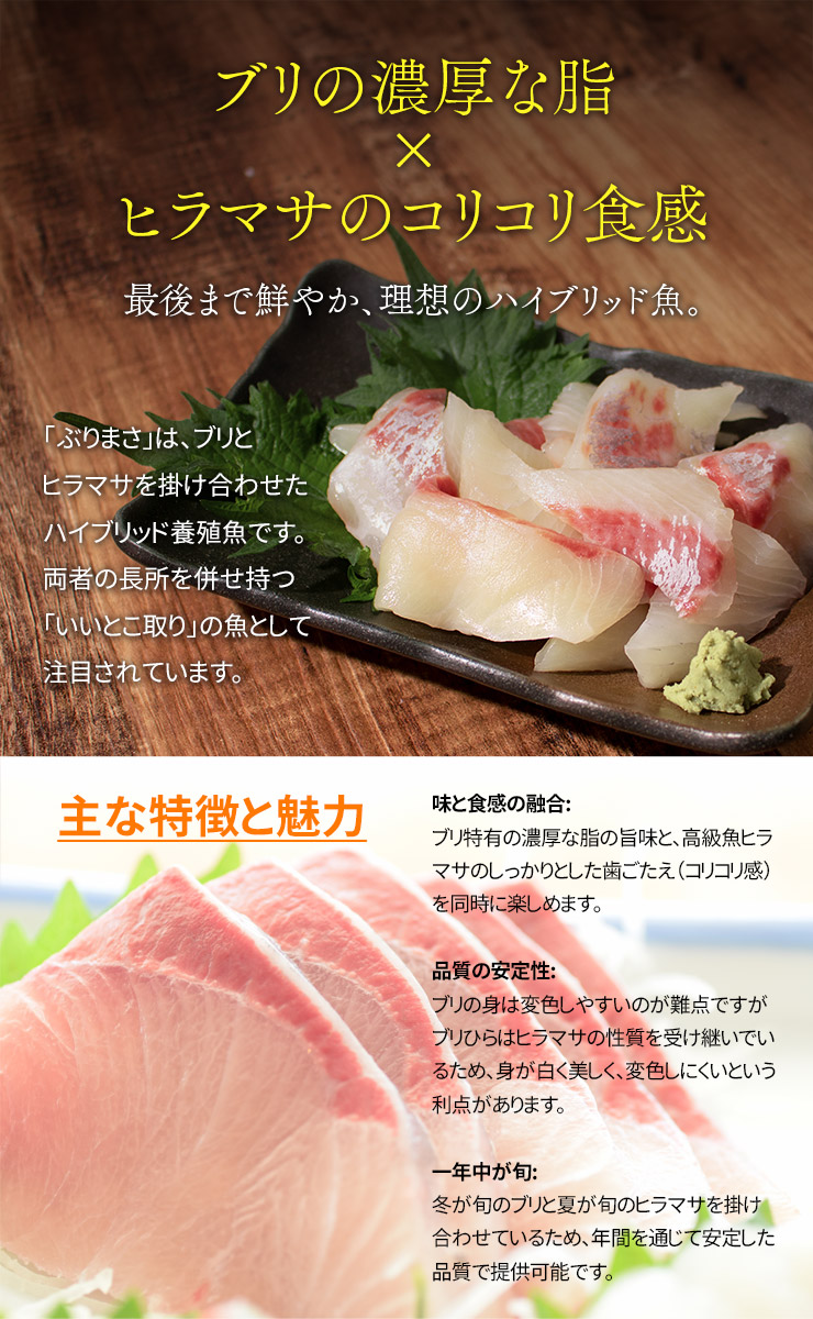 ヒラマサの身の食感とブリの脂のりが両方楽しめる魚です