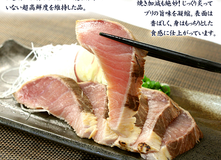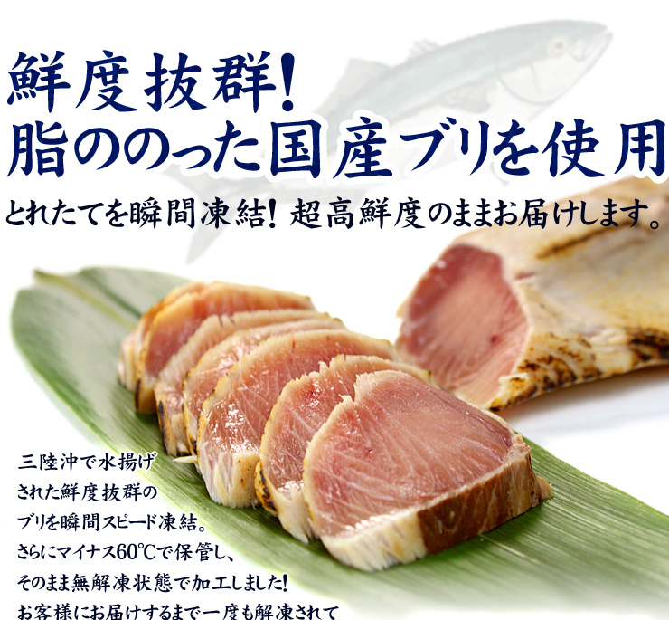 国産天然ぶりタタキたっぷり500g!脂ののった鮮度抜群のブリを焼き上げ旨味をギュッと閉じ込めました 背または腹、2~4片入り《ref-br1》〈br1〉yd5[[ぶりタタキ500gセット]