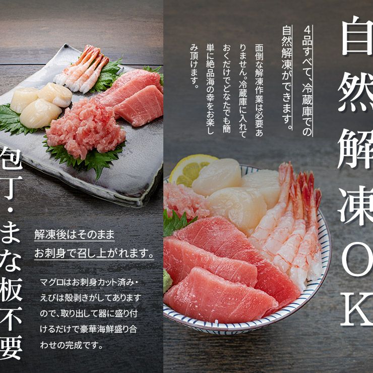 他の画像を見る 自然解凍ですぐ食べられる高級海鮮セット 【送料無料】海鮮4品セット「彩」いろどり 3~4人前 マグロ中トロ、ネギトロ、生ほたて、甘えび 自然解凍OK (ギフト プレゼント お中元 御中元 海鮮丼 手巻き寿司 海鮮福袋 刺身 おつまみ)〈ird1〉yd9[[海鮮セット彩いろどり] クール便でお届け 販売価格 ¥ 4,680 税込 カートに入れる お気に入りに登録する