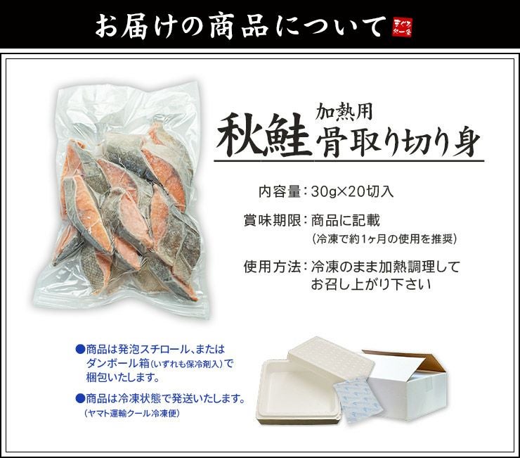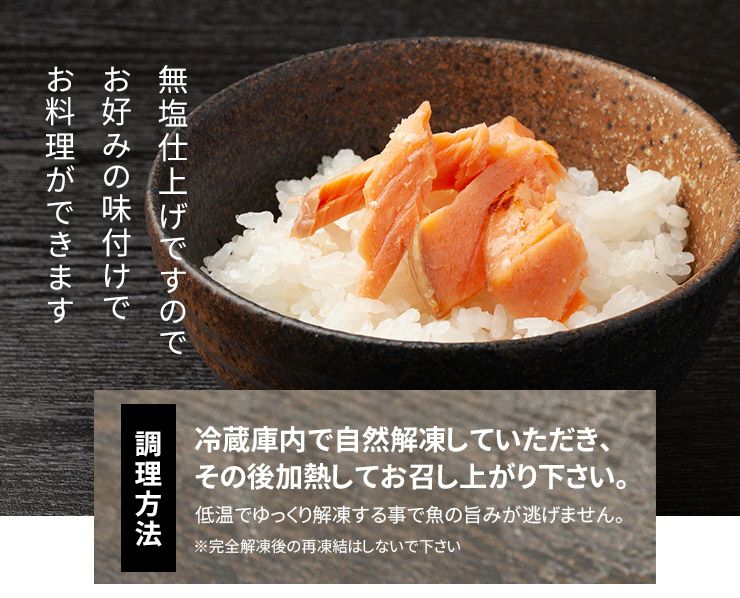 他の画像を見る 【すぐに使えるバラ冷凍】チャック袋入り 骨取り 無添加 無塩 秋鮭 骨取り切り身 30g×20切れ 加熱用 無塩 バラ凍結 チャック袋入 (白鮭 さけ 弁当 朝食) [[サケ骨取り切り身] クール便でお届け 販売価格 ¥ 2,780 税込 カートに入れる お気に入りに登録する