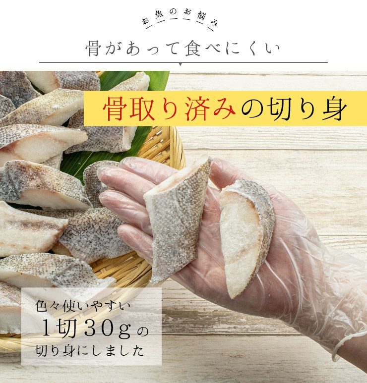 他の画像を見る 【すぐに使えるバラ冷凍】チャック袋入り 骨取り 無添加 無塩 真鱈 骨取り切り身 30g×20切れ 加熱用 無塩 バラ凍結 チャック袋入 (マダラ まだら 弁当 朝食) [[真鱈骨取り切り身] クール便でお届け 販売価格 ¥ 2,180 税込 カートに入れる お気に入りに登録する