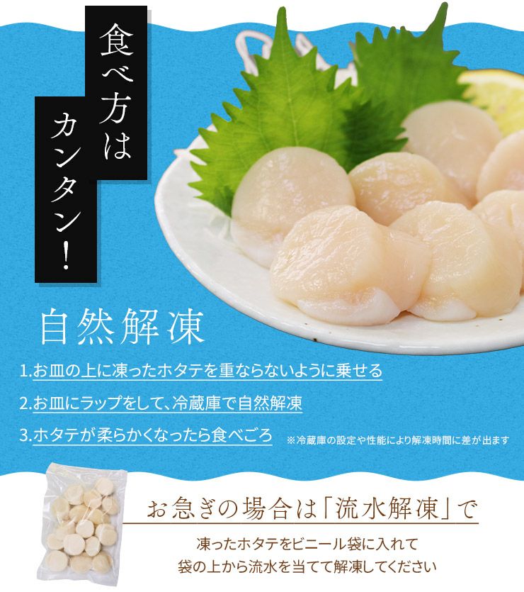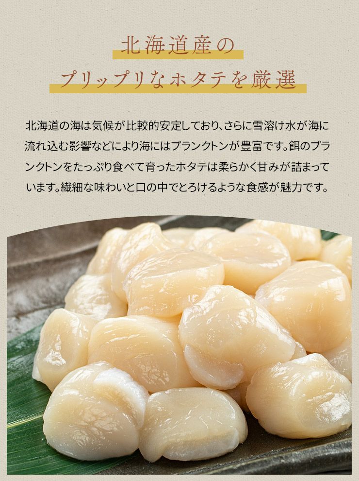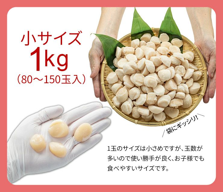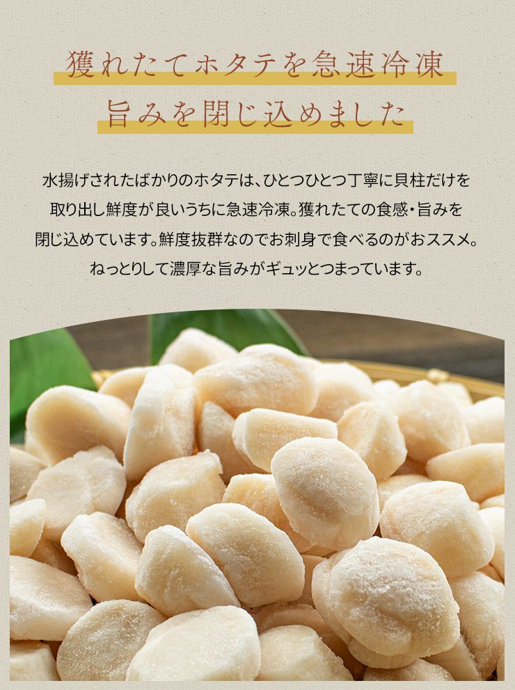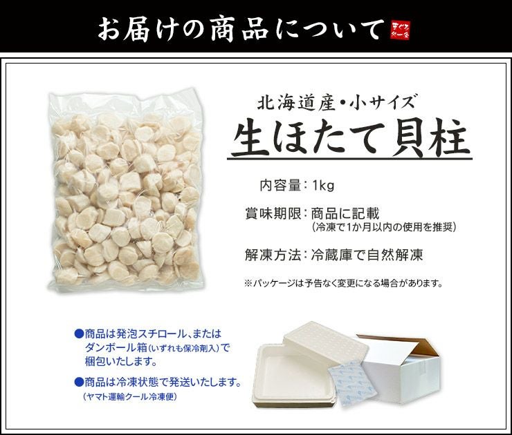 他の画像を見る バラ凍結だから小分けもOK!極上ほたて食べ放題 北海道産生ホタテ貝柱1kg 小サイズ(80~150玉入) 送料無料 お刺身 バター焼き(お歳暮 お年賀 ほたて 帆立 海鮮丼 手巻き寿司 おつまみ 御祝 内祝 贈り物 プレゼント ギフト)[[生ホタテ1kg_小サイズ] クール便でお届け 販売価格 ¥ 7,980 税込 カートに入れる お気に入りに登録する