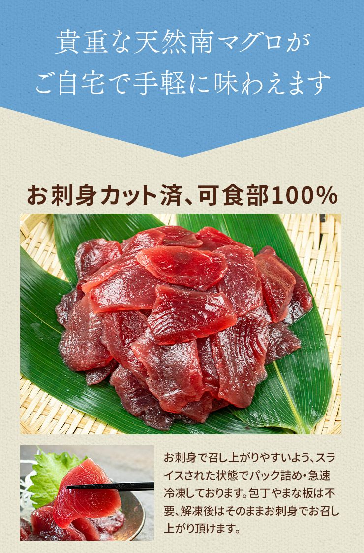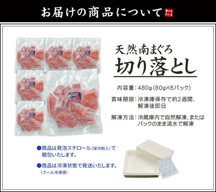 他の画像を見る 今や貴重な「天然南マグロ」食べ放題! 天然 南マグロ 切り落とし 480g(80g×6パック) もっちりとした食感、甘みと深いコクのみなみまぐろ(ミナミ鮪 寿司 手巻き寿し おつまみ 刺身 まぐろ インド鮪 母の日 父の日 ギフト)[[天然ミナミ鮪切落しセット] クール便でお届け 販売価格 ¥ 5,998 税込 在庫切れ 詳細を見る お気に入りに登録する