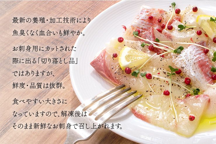 他の画像を見る カット済みだから解凍後すぐ食べられる! 国産 ブリマサ ぶつ切り 200g ヒラマサの引き締まった食感とブリの濃厚な脂のりが両方楽しめる品種。切り落とし部位を使った訳あり品ですが色・鮮度は抜群。流水解凍OK (お刺身 寿司 手巻き寿し カルパッチョ おつまみ 海鮮丼) [[ぶりまさブツ切り200g] クール便でお届け 販売価格 ¥ 1,280 税込 在庫切れ 詳細を見る お気に入りに登録する