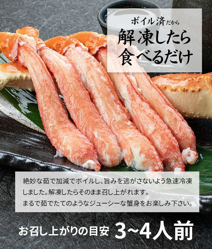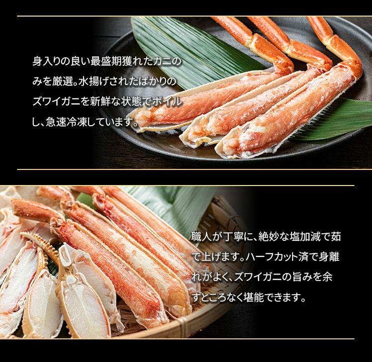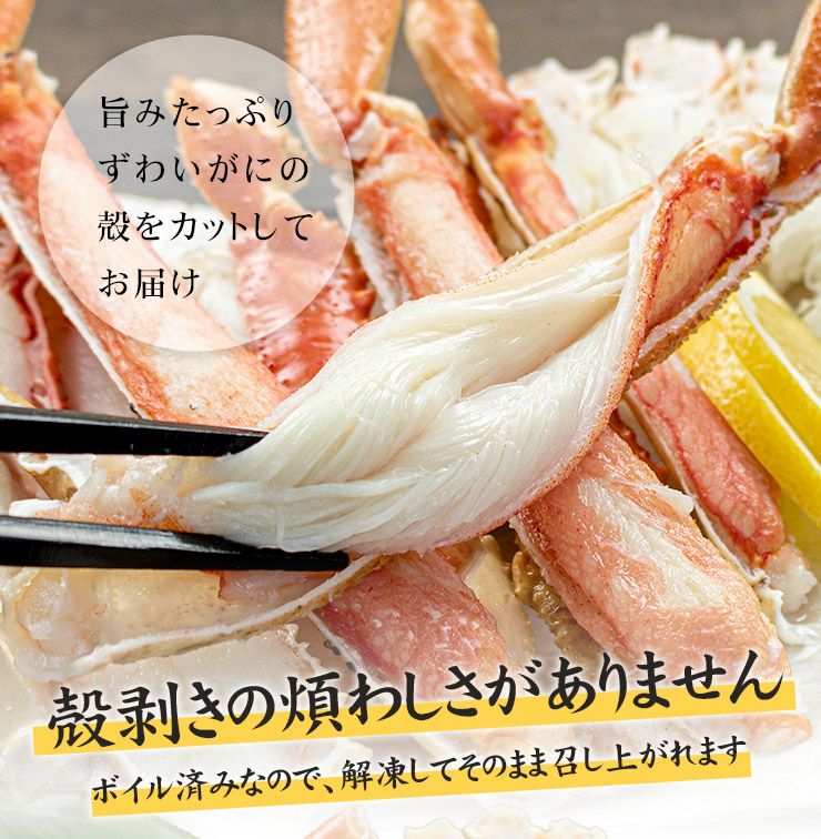 他の画像を見る 解凍後はそのまま召しあがれます カットズワイ蟹 ボイル 1kg 送料無料 カット済(ハーフポーション) 殻剥き不要 繊細な旨味の詰まったずわいガニを急速冷凍、旨味を閉じ込めました 解凍後そのまま召し上がれます (蟹鍋 焼きガニ バター焼き ずわい) [[ボイルズワイHP1kg] クール便でお届け 販売価格 ¥ 12,980 税込 在庫切れ 詳細を見る お気に入りに登録する