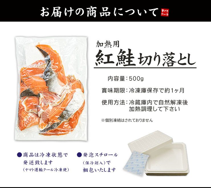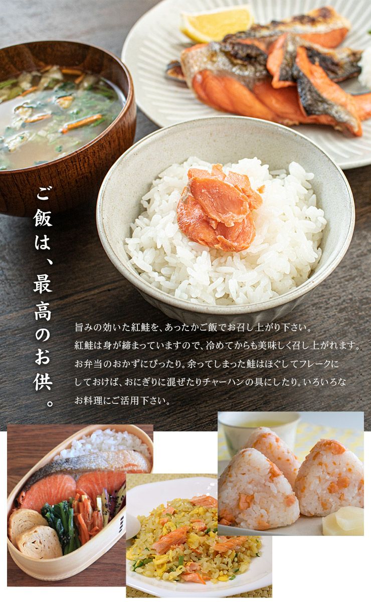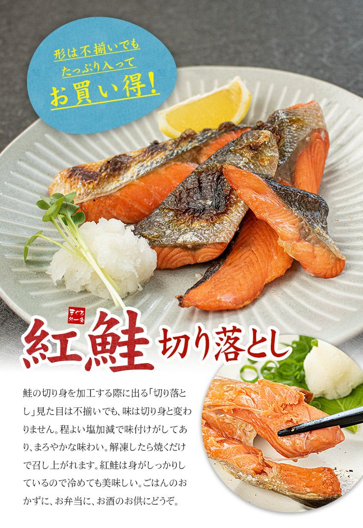 他の画像を見る 紅鮭切り落とし500g 中辛 加熱用 (形や大きさ不揃い カマ 尻尾) 旨みが濃く深い味わいの紅鮭 程よい塩加減で味付けしました お弁当のおかず お茶漬け チャーハンの具に《ref-shr1》yd5[[紅鮭切り落とし500g] クール便でお届け 販売価格 ¥ 1,188 税込 在庫切れ 詳細を見る お気に入りに登録する